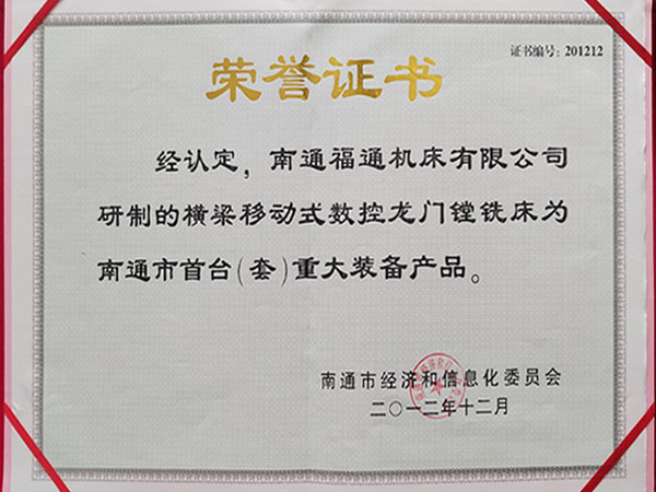 公司通過ISO9001:2015質量體管理系認證、ISO14001:2015環境管理體系認證、ISO45001:2018職業健康安全管理體系認證、先后榮獲:中國機床行業十佳品牌、江蘇名牌產品、江蘇省質量信得過企業、南通市科學技術進步獎、南通市AAA級重合作守信用企業、高新技術企業、南通市首臺(套)重大裝備產品等榮譽。